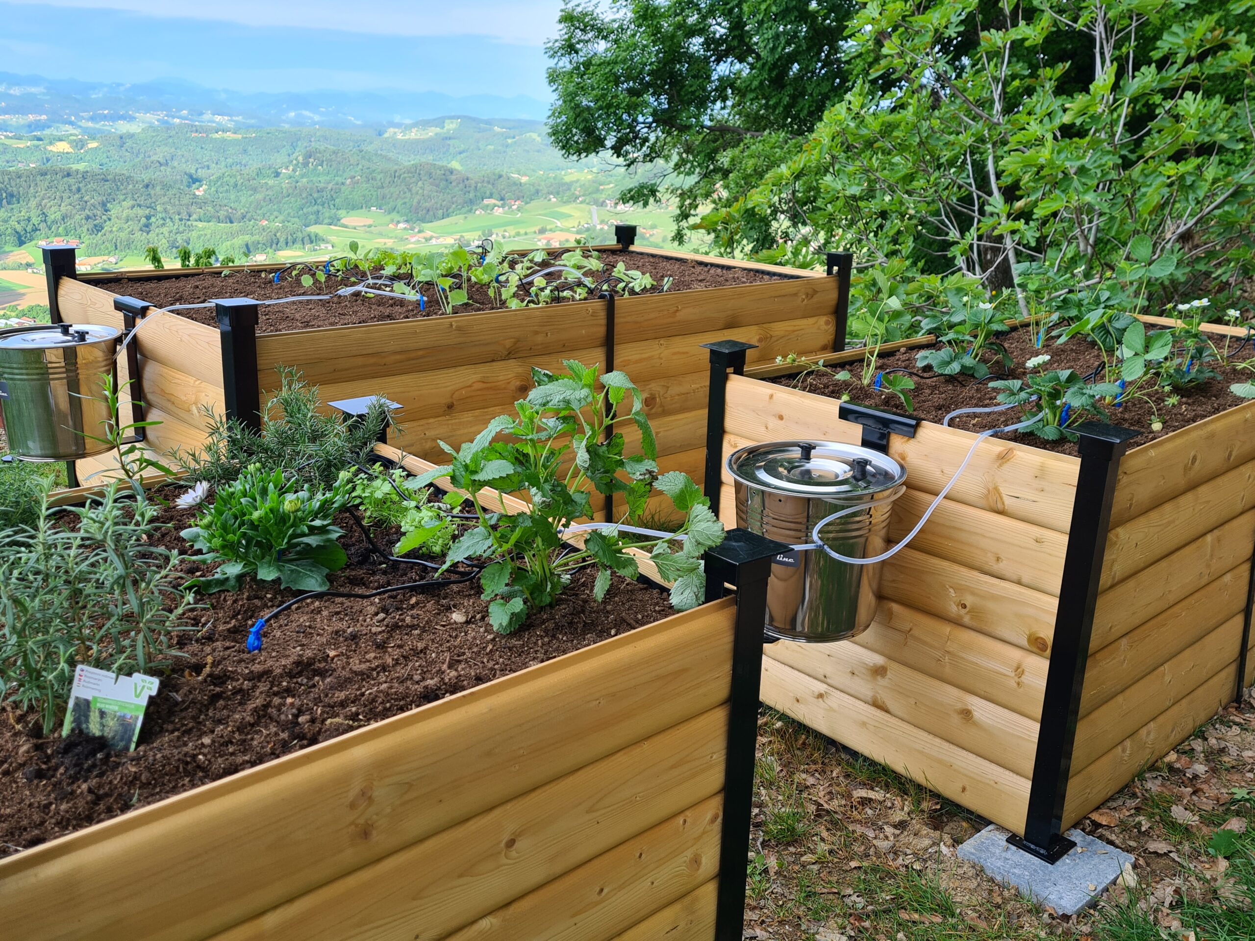 Trajna garancija na funkcionalnost; vsak les, ki je izpostavljen zunanjim vremenskim vplivom, je s časom obsojen na trohnenje in propad. Z izbiro prave površinske zaščite, oziroma odpornejšega lesa, seveda lahko življenjsko dobo podaljšujemo. Slej kot prej pa bo potrebno les nadomestiti z novim. Prednost naše kovinske konstrukcije je ravno v podaljšanju življenjske dobe visoke grede. Vsak vijačen lesen sestav, prične ob gnitju in trohnenju razpadati ravno na mestih stikov vijaka in samega lesa. Naše grede so sestavljene brez enega samega vijaka, saj naša inovativna konstrukcija zagotavlja naleganje lesenih polnil (brune debeline 30 mm) na večjih končnih površinah polnil in ne samo na mestih vijaka. Pri lesu v naravi je najbolj pomembno, da ne prihaja do prehajanja vlage iz zemlje direkt na lesen del konstrukcije. Tako najhitreje pride do pričetka trohnenja in gnitja lesa. Če je lesen del grede izpostavljen dežju, je to nekaj naravnega, saj ga takoj za tem zrak in sonce posuši, v kolikor pa je ta vir vlage neprestano prisoten iz tal, pa je pričetek hitrega propadanja neizogiben. Pri naši inovativni konstrukciji nimajo leseni deli nobenega stika z zemljo, saj je na tem mestu kovinska konstrukcija, ki zagotavlja togo in večno sestavo grede, kar potrjuje tudi doživljenjska garancija na funkcionalnost. Vsi kovinski deli so dvoslojno prašno barvani.