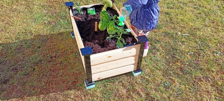 Otroška visoka greda za prve korake v svet vrtnarjenja. Izredno hitro postavljena in prav tako pospravljena ob koncu sezone.