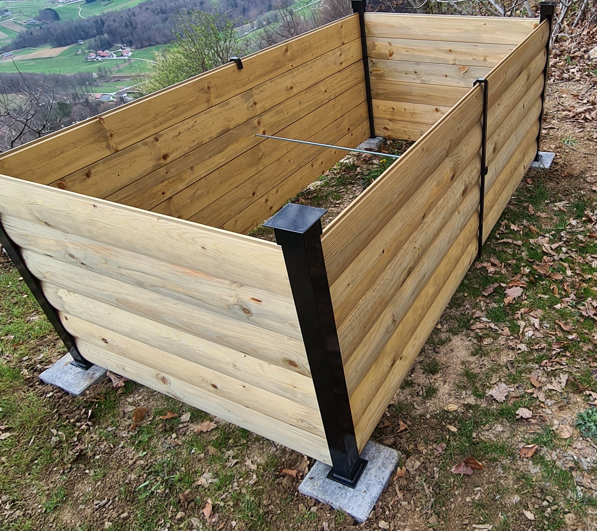 Izredno masivna visoka greda pravokotne oblike. Primerna za vse, ki imajo dovolj prostora za postavitev, oziroma jo želijo kombinirati z ostalimi oblikami in postavitvami, ter kar najbolje izkoristiti prostor. Brune debeline 30mm poskrbijo za togo stabilno postavitev, ter dolgo življenjsko dobo. Življenjska doba takšne grede je od 8 do 10 let. Garancija na kakovost zagotovljena. V ceno je vključen tudi zalivalni sistem.
